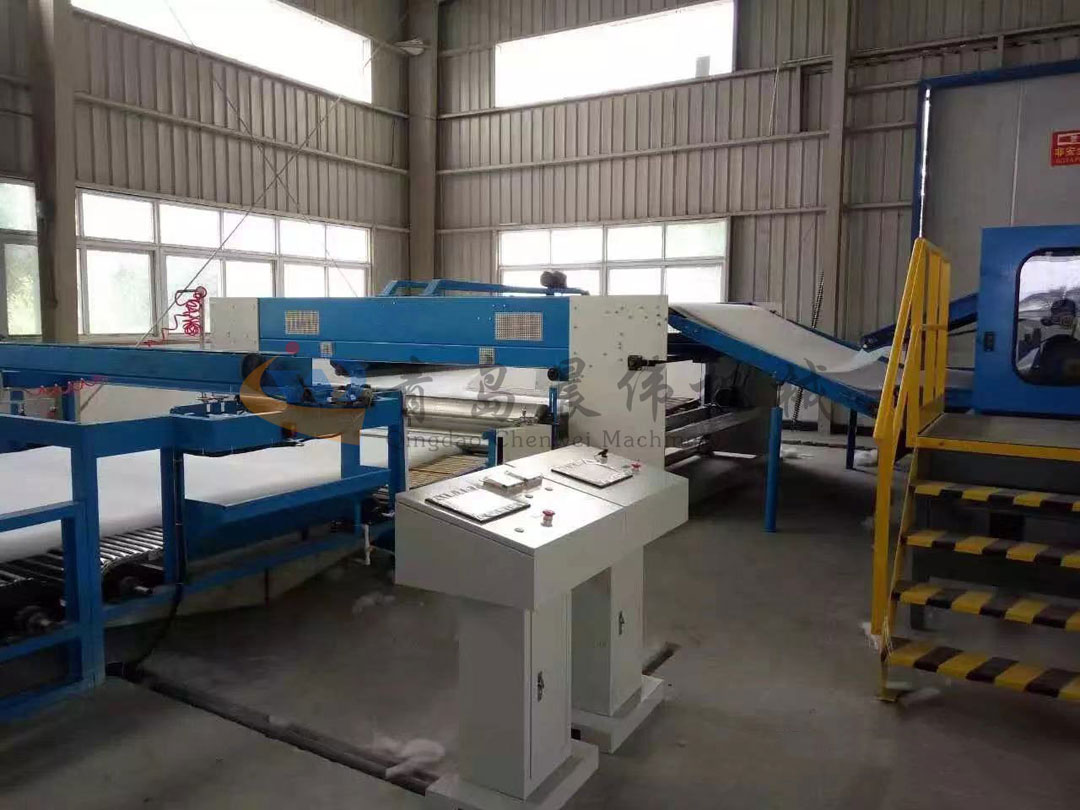 5. CWPW-鋪網(wǎng)機(jī):用于將梳理纖網(wǎng)通過移動小車交叉折疊為所需幅寬和定量的多層纖網(wǎng),以供后道工序使用。鋪網(wǎng)輥采用特殊結(jié)構(gòu),加裝壓網(wǎng)輥和導(dǎo)流板,不飄網(wǎng)不起皺,五只大功率電機(jī)精確控制各部件的運(yùn)動,電動輸出簾高度調(diào)節(jié)裝置