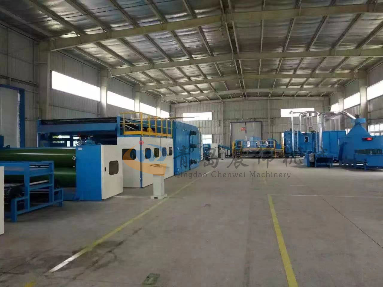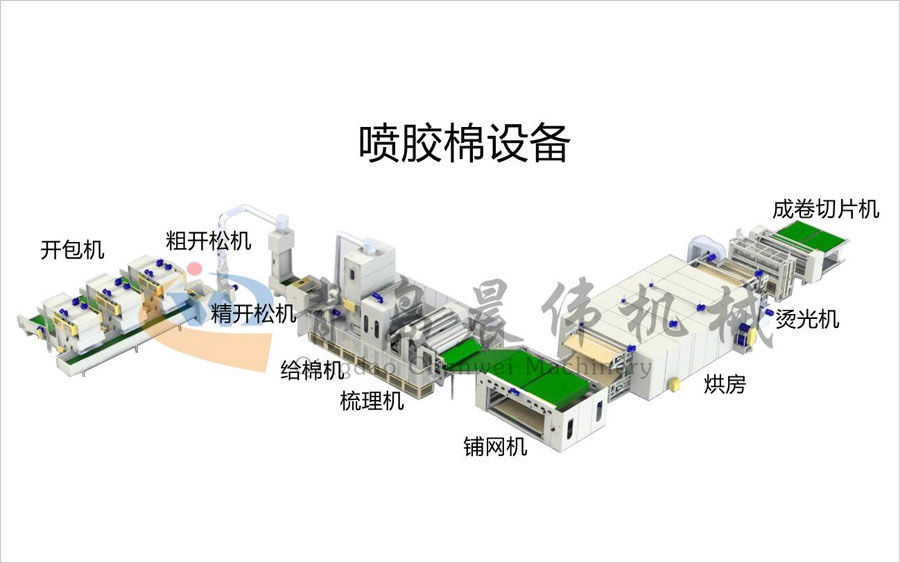 開包機-開松機-振動給棉機-梳理機-鋪網(wǎng)機-烘房-燙光機-成卷切片機